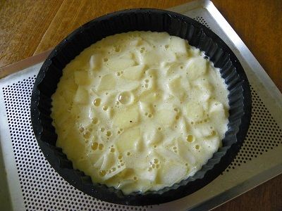- peler les poires, couper les en quatre, ôter le cœur puis couper les les en lamelles au dessus du moule