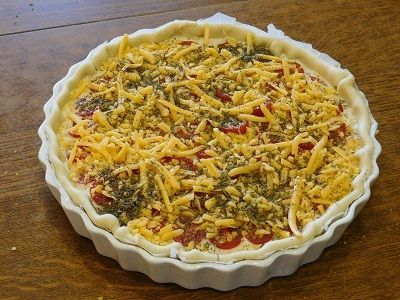 ESCAPADE EN CUISINE de janvier 2017 : Tarte oignons, cheddar et tomates cerises (thermomix)