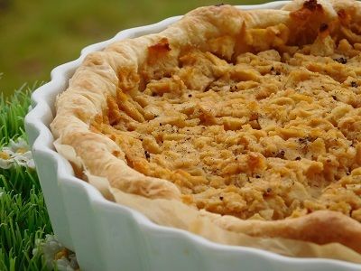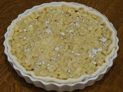 verser la préparation sur le fond de tarte - puis égaliser la surface à l'aide d'une spatule